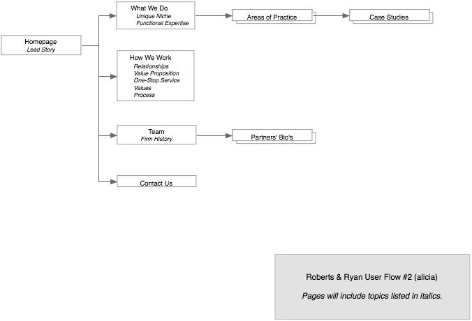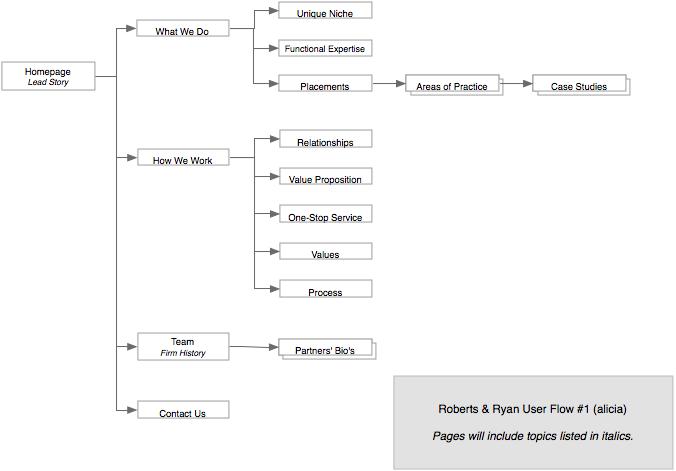 Roberts & Ryan's original site copy languished in redundancy and disorganization. Its stiff tone held the reader at a distance, undermining the firm's personal approach, and its continuous restatement of the firm's core values obscured virtually every other topic.